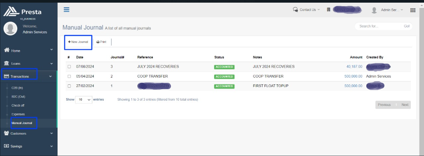 Under transactions, select manual journal Click on the new journal button as highlighted Enter the following details as requested Input the transaction code reference - Under the reference number field Write a brief explanation of the journal - Under ...