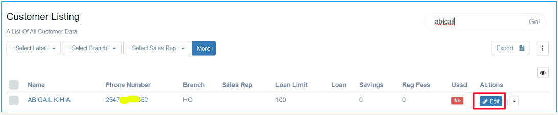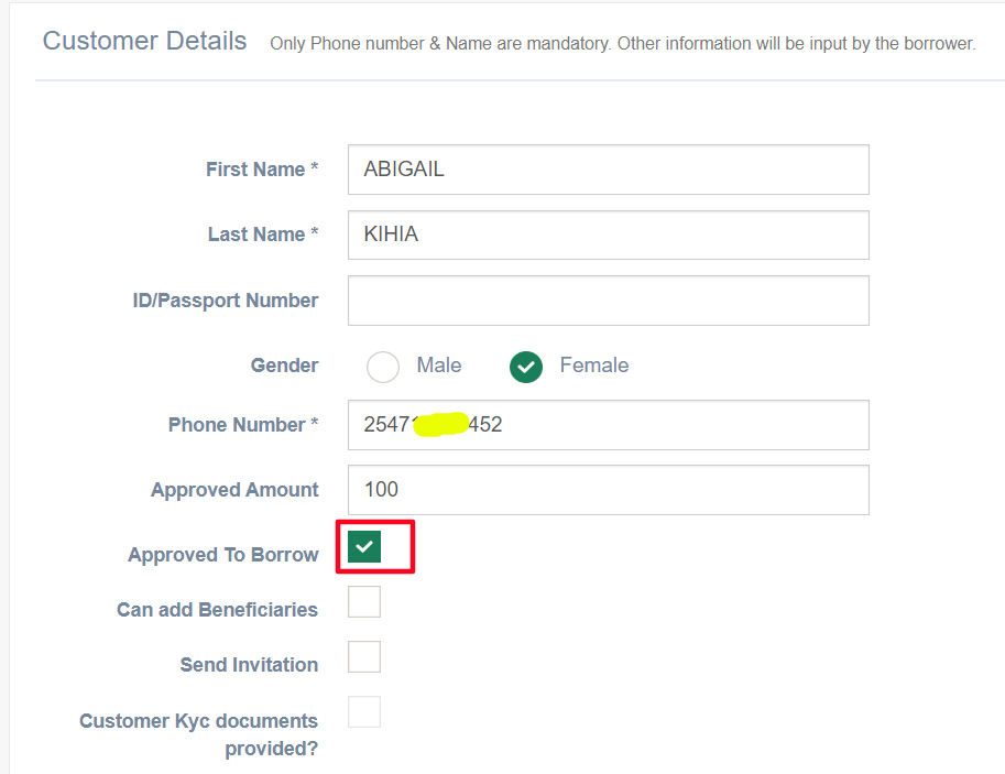 Click on Submit. The changes will be saved and the customer will not be able to take a loan.