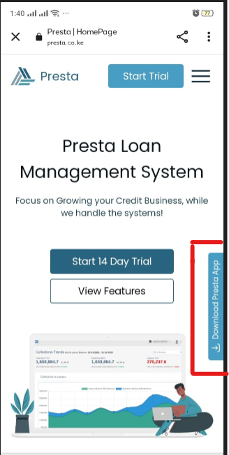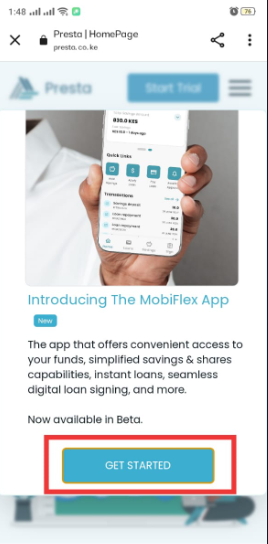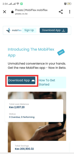 4. You will be redirected to the mobiflex page, click on "Download App" as indicated.