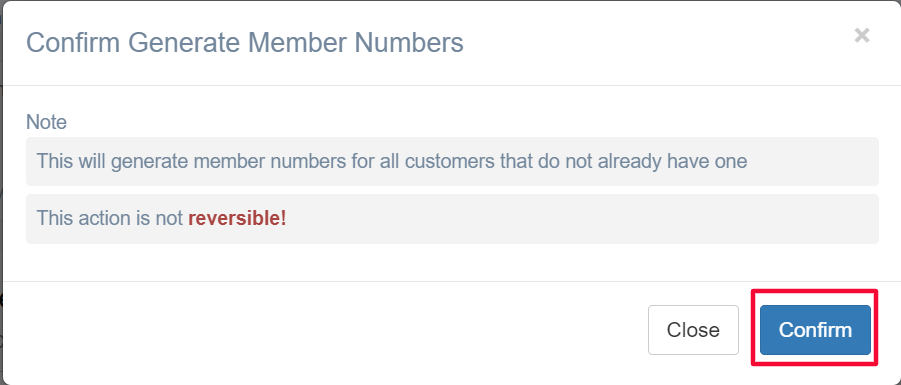 10. To automatically generate member numbers to member's without one, click on Generate Member Numbers.