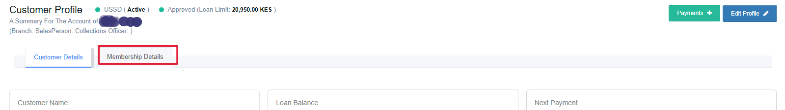 To view the profile of a specific customer: 1. Click on 'customers' dropdown as shown below 2. Search for the customer. 3. Click on the customer's name. The customer Profile will contain information such as: Loan Accounts - Shows a list of loans ...
