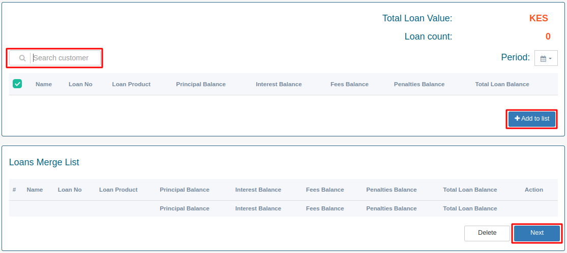 Merge Loan -> This allows you to merge to loan into one.