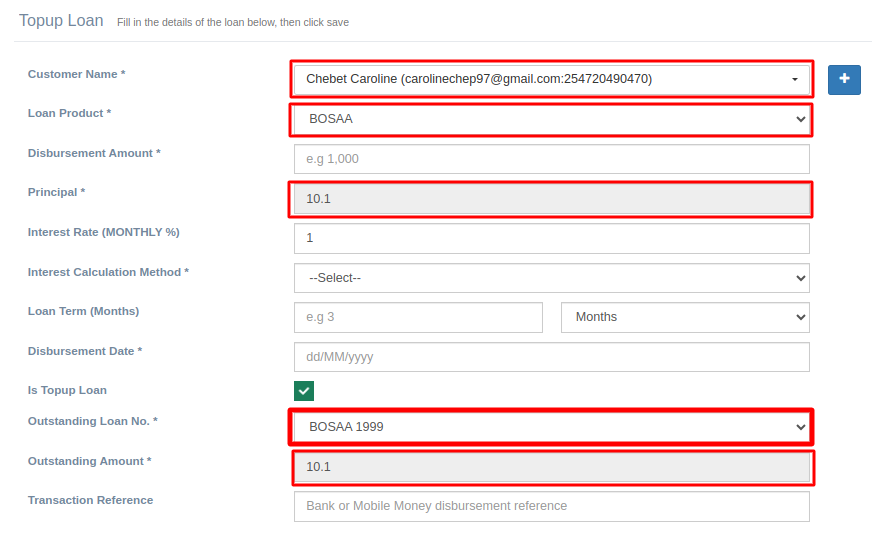 Topup Loan -> This where one can Topup a loan.