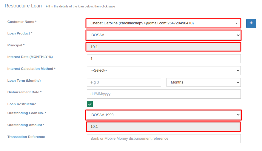 This basically creates a new loan with the principal being the outstanding amount of the previous loan. To learn more about Creating a new loan,