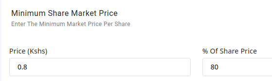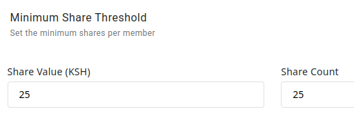 Here, you set the minimum shares a member of your organization can own so that they are recognized as members of the organization. You can set either the minimum share value or the minimum number of shares a user can own. No user will be allowed to sell shares and remain with a share count below the shares set above.