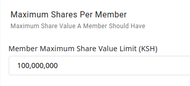 Here you can set the maximum share value a single user in your organization can own. No user will be allowed to own more in share value than the value set here.